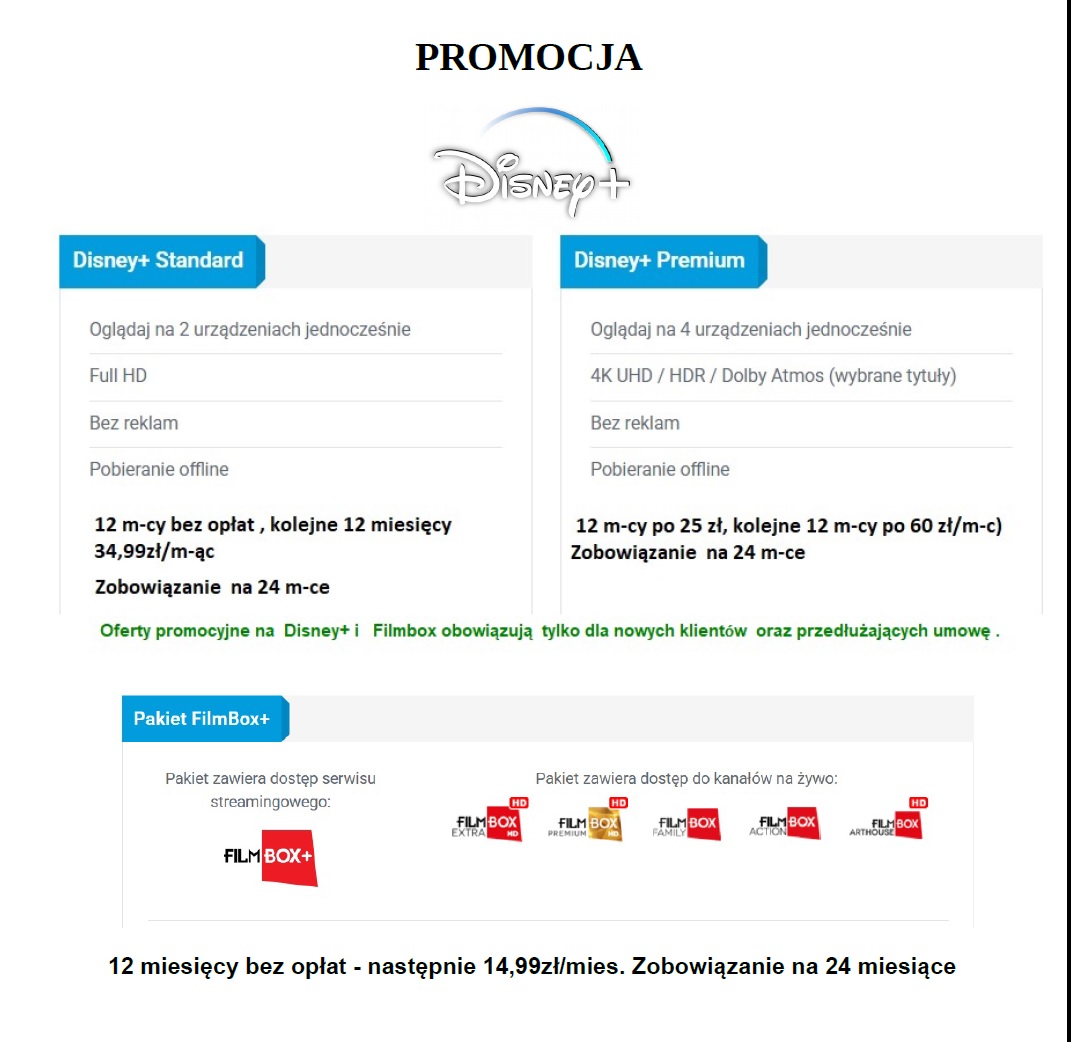 | Pakiet Filmbox | na czas 12 miesięcy | 15zł brutto miesięcznie** |